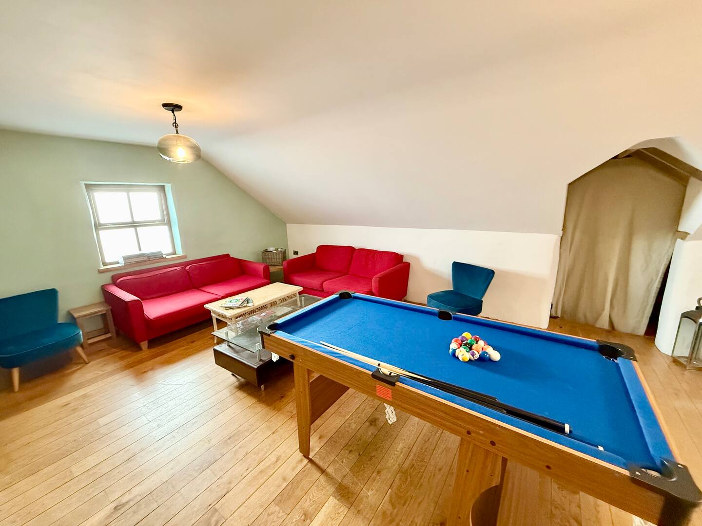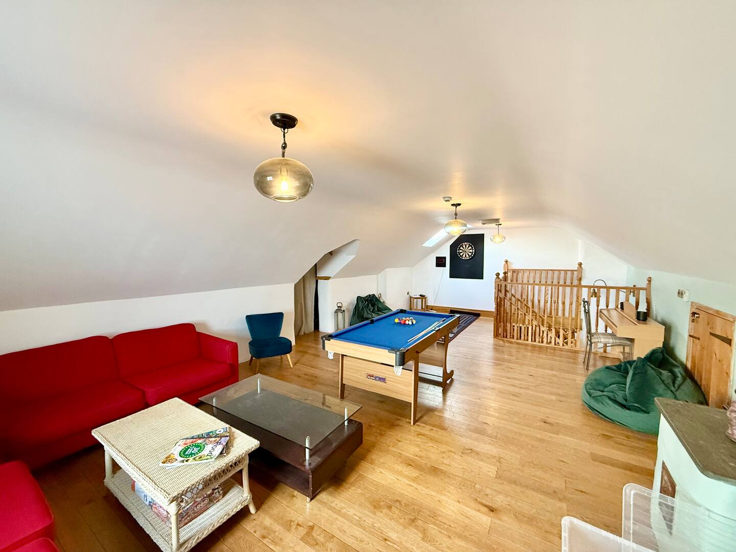 • Upstairs games room with pool table, darts and games.