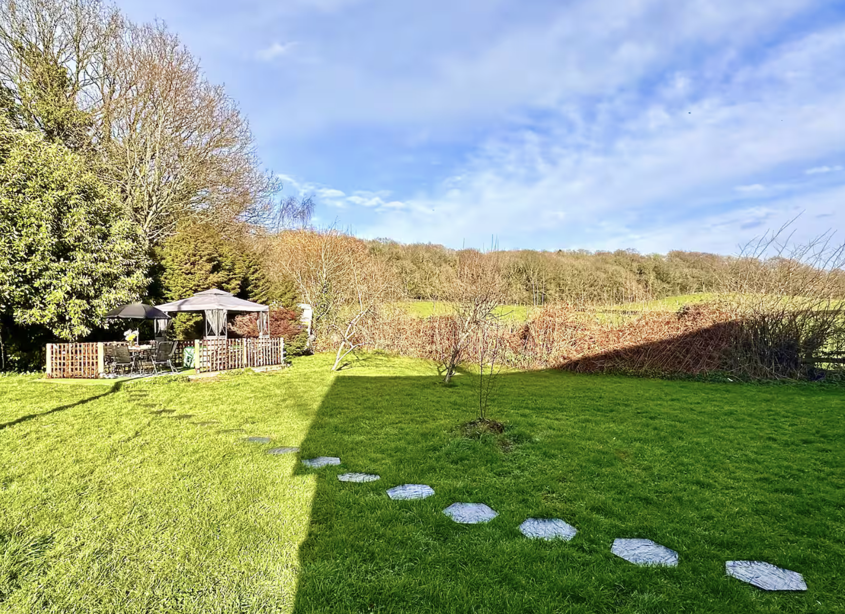 Our two storey bungalow is surrounded by an acre of grounds in the secluded and rural little village of Llandewi Rhydyrch in Abergavenny.