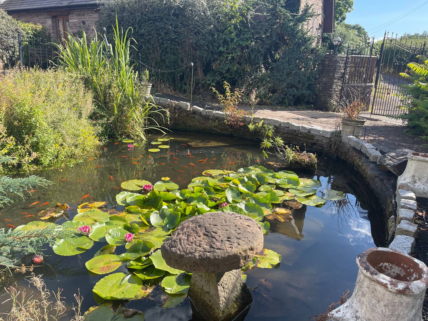 Look out onto this wonderful courtyard with fishpond and enjoy the silence of rural wales.